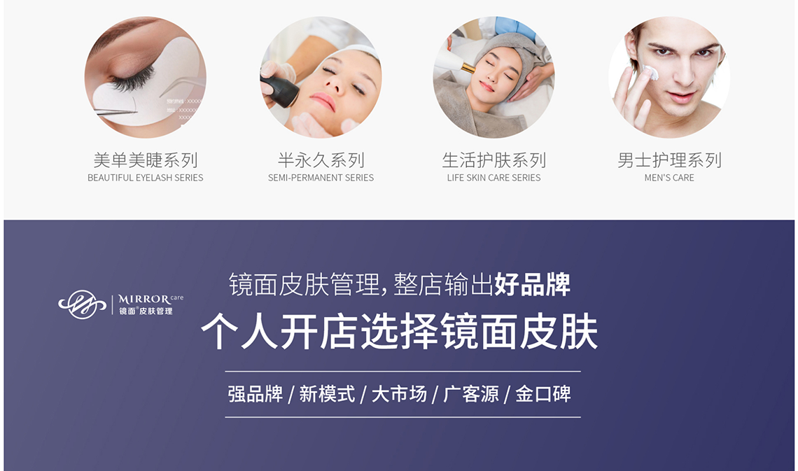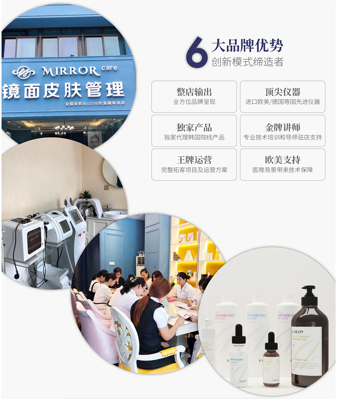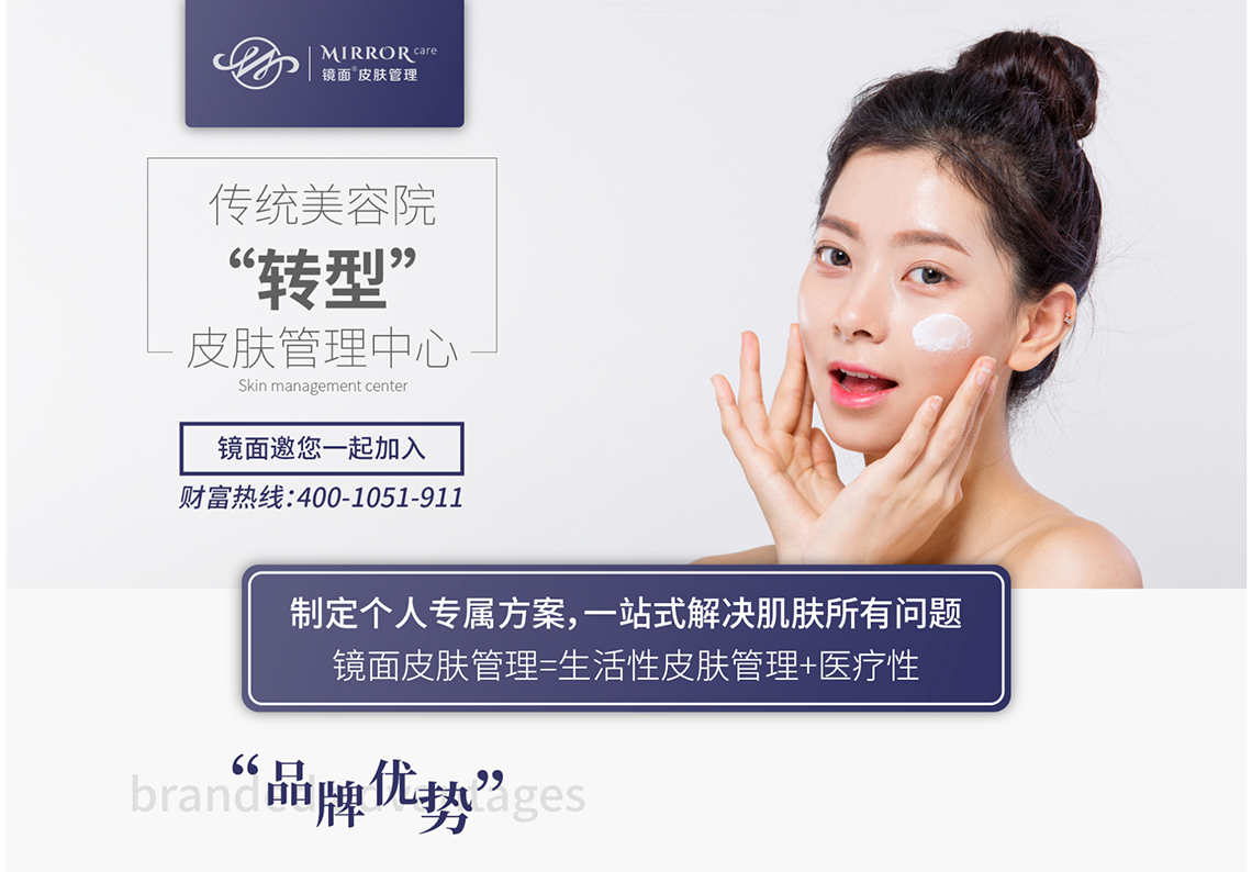 Mirror镜面皮肤管理创立于2013年,总部在上海浦东,目前全国有近1000家加盟店,Mirror镜面皮肤管理具有八大特色系列,分别是:韩式热门皮肤管理系列,韩式美甲系列,传统医学美容系列,半永久系列,日式美睫系列,医疗美容系列,致力于最新的科学技术,快速的客户相应机制,高满意的品质与服务,铸就国人美丽蜕变。