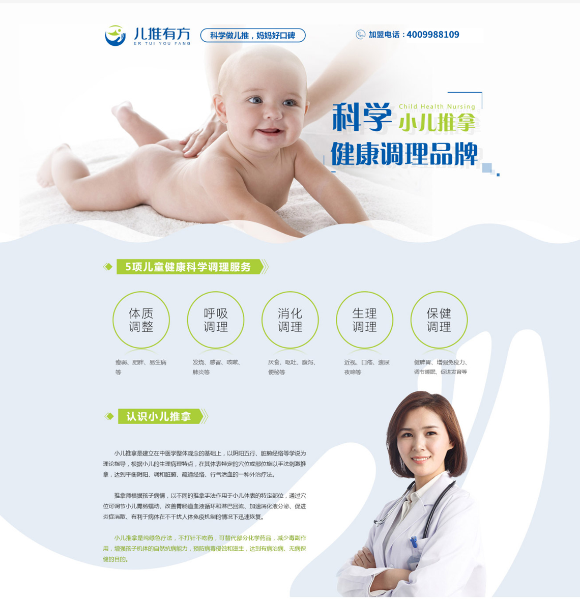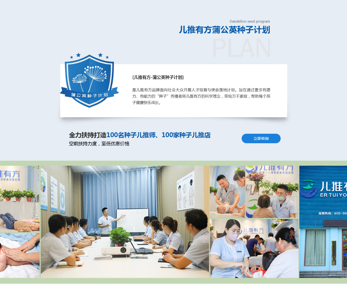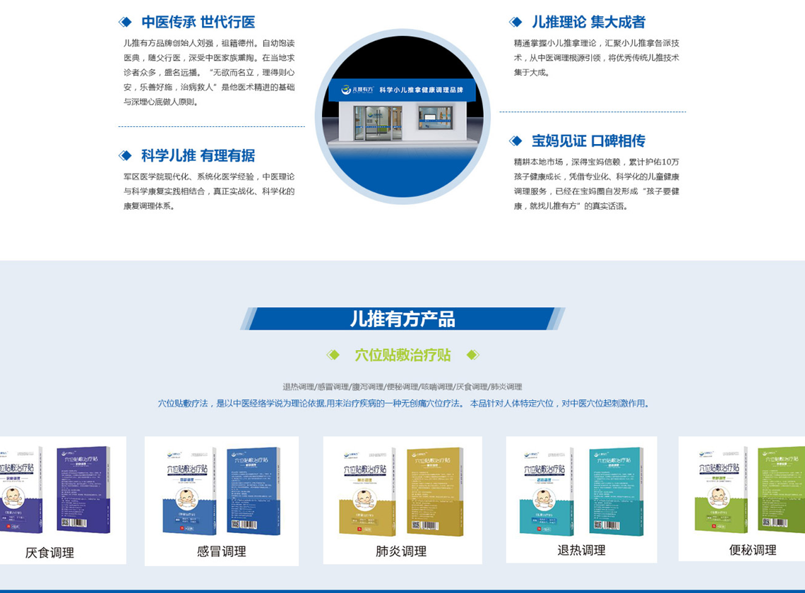 儿推有方小儿推拿,隶属于山东儿推由方健康管理咨询有限公司,是由业界知名小儿推拿专家、中国儿推协会秘书长、沈阳军区医院康复理疗科副主任刘强先生创办。秉承“传承中医文化,创新科学儿推”的初心,致力于打造中国科学化、专业化的儿童健康调理品牌,帮助天下孩子健康快乐成长。成立十余年来,山东儿推由方健康管理咨询有限公司深耕山东本地市场,凭借真正实战儿推经验,不断创造本地宝妈口碑新奇迹。随着国家对于中医健康事业的支持,父母对于孩子的绿色健康调理日益重视。山东儿推由方健康管理咨询有限公司,汇聚优质的专家资源,将十余年的儿推实战经验进行科学化、系统化梳理,成立“儿推有方”科学儿推健康调理品牌,以品牌推动事业发展,以品牌加速行业进步。