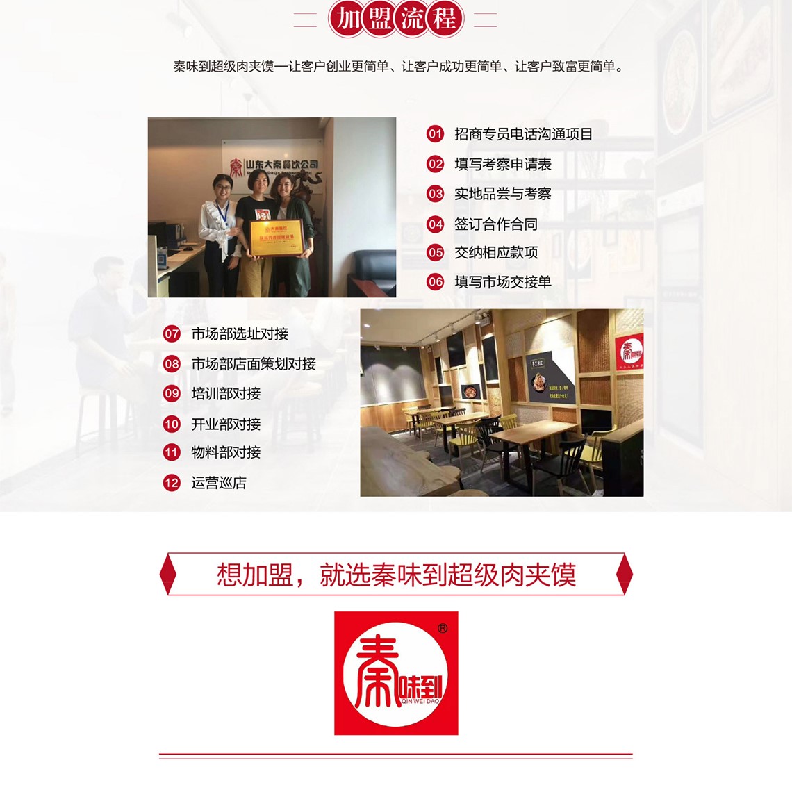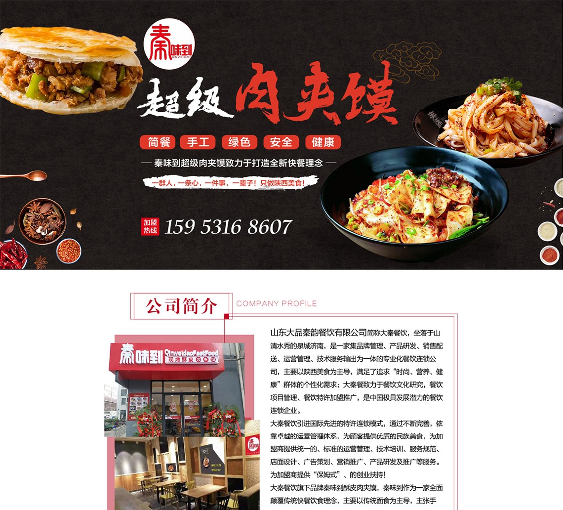 秦味到超级肉夹馍是一家定位于快餐行业,集自主研发、生产、配送、管理、销售于一体的中西结合的快餐企业。