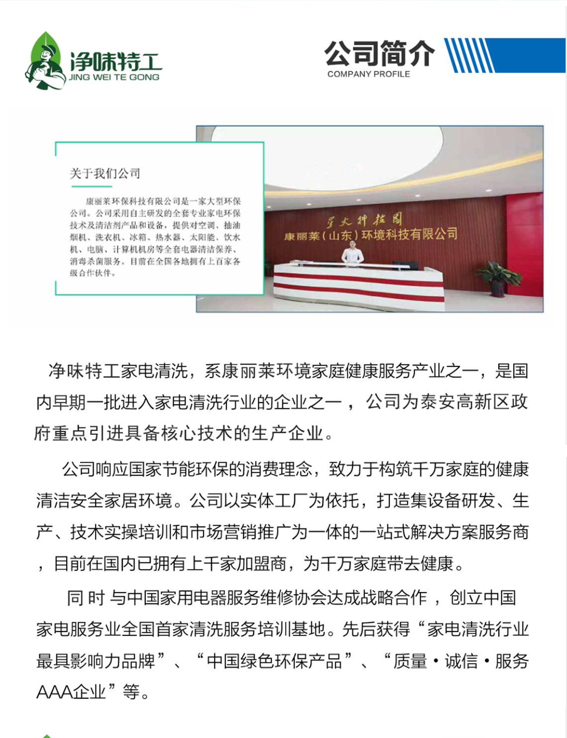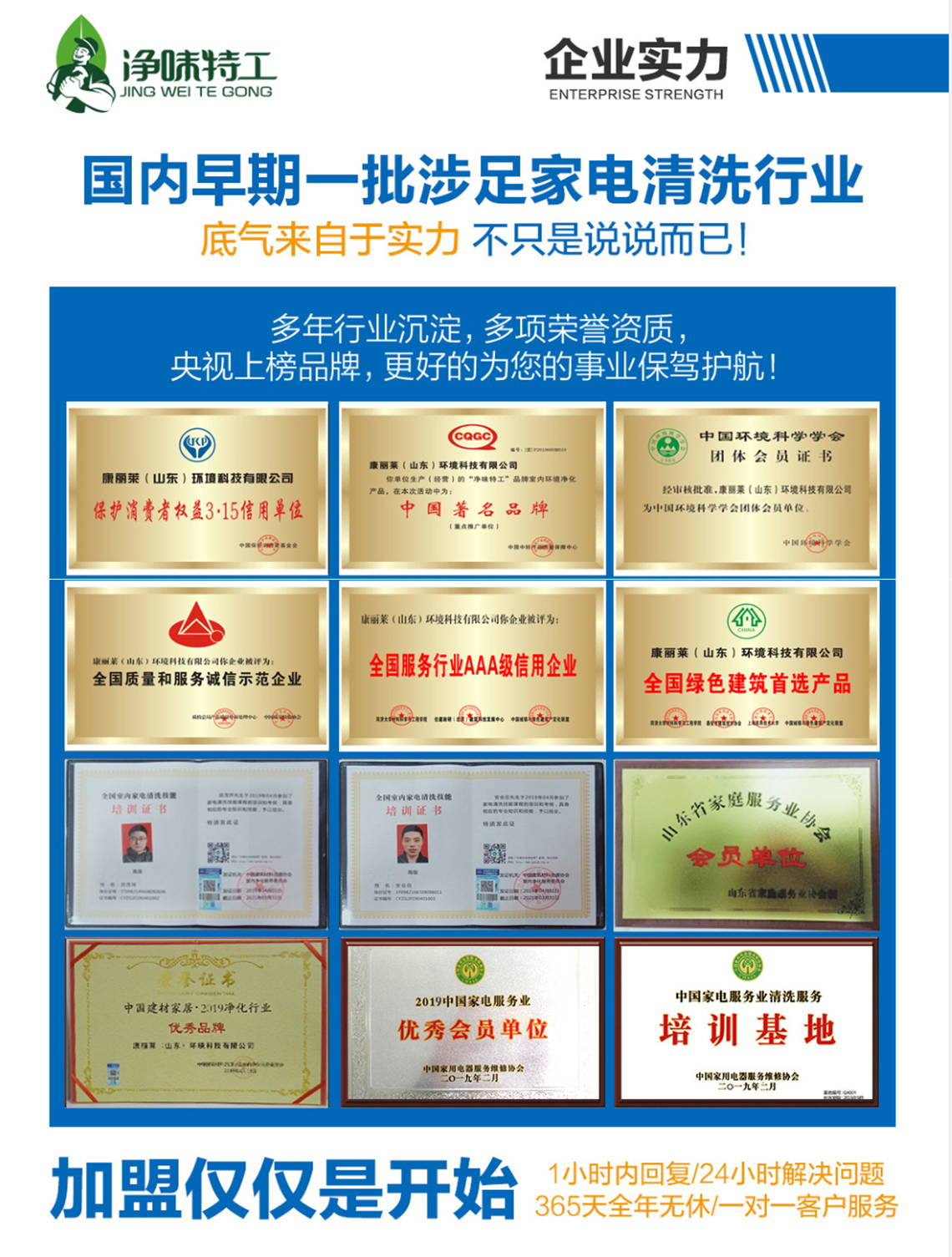 4、为什么要选择家电清洗行业:目前,在我国一线城市普通家庭空调、洗衣机、油烟机、热水器、饮水机、冰箱等电器的普及率几乎达到100%,二三线及县级城市普及率也达到80%以上,各种家电的市场存量及容量巨大。而且随着服务行业的不断发展,以及人们的环保及健康意识不断加强,对于家电清洗等专业服务的接受度和支出也在不断迅速增加。