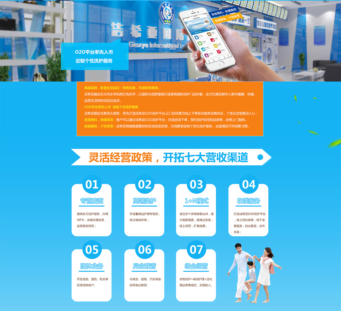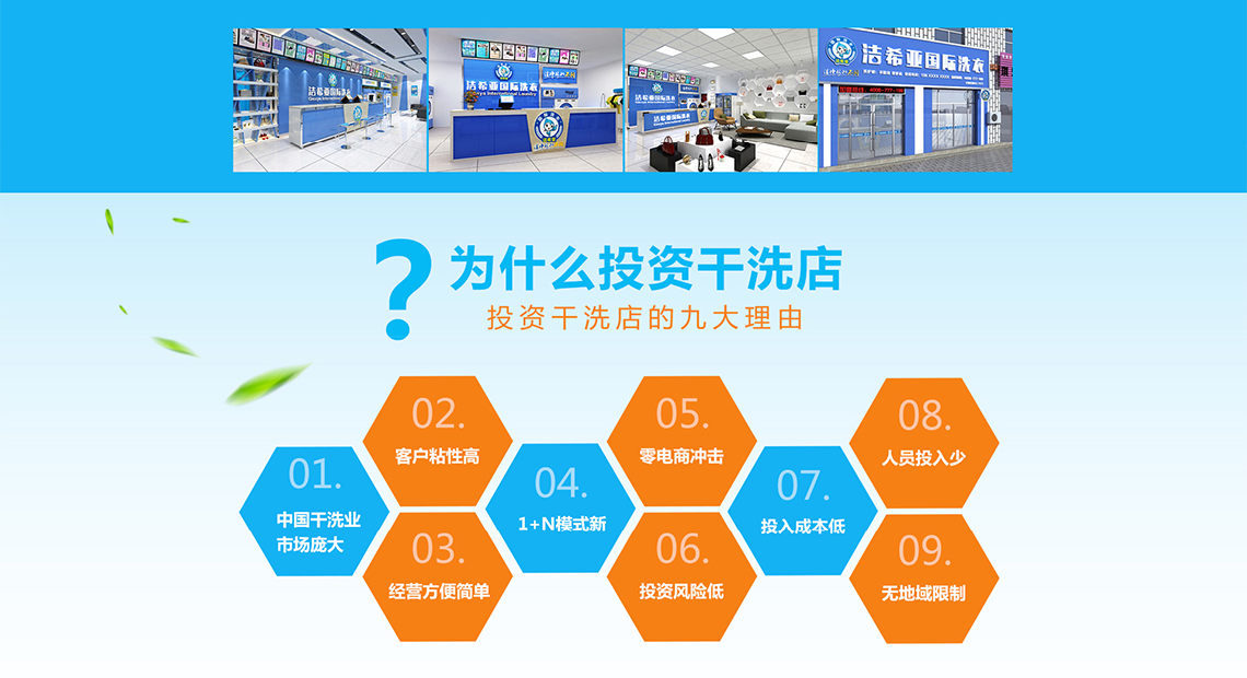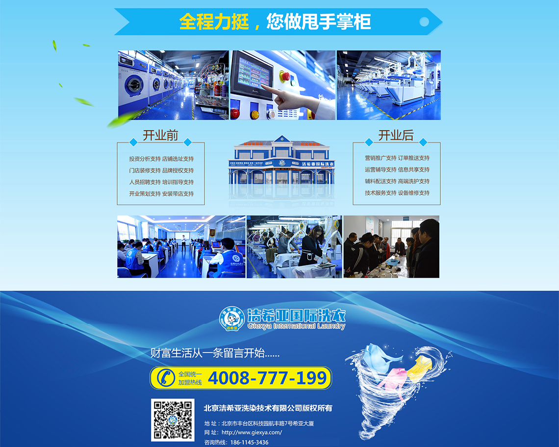 洁希亚公司已形成全方位运营模式,利用专业的洗护技师团队、雄厚的资金实力、先进的洗护技术、高端的干洗设备等优势,紧扣市场、销售、品牌、服务、生产、培训、管理8大环节,已形成完备系统、成熟、高效的连锁加盟业态管理经验。凭借着国际领先的技术、卓越的产品,优质的服务和成功的加盟经营模式,公司不断发展壮大。