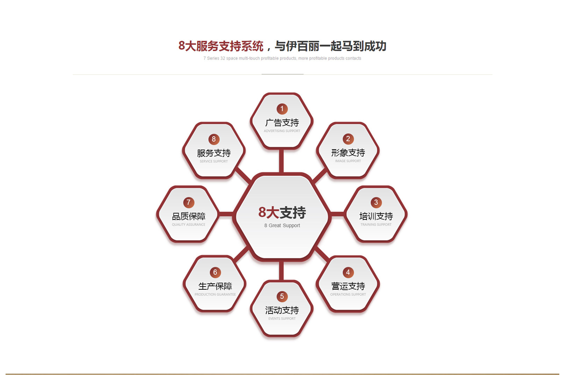 由英国知名公司及国内资深营销团队提供技术及管理支持,拥有业内优秀的各级管理人才,确保伊百丽产品与服务的长期稳定性。大限度减低加盟商的经营风险。