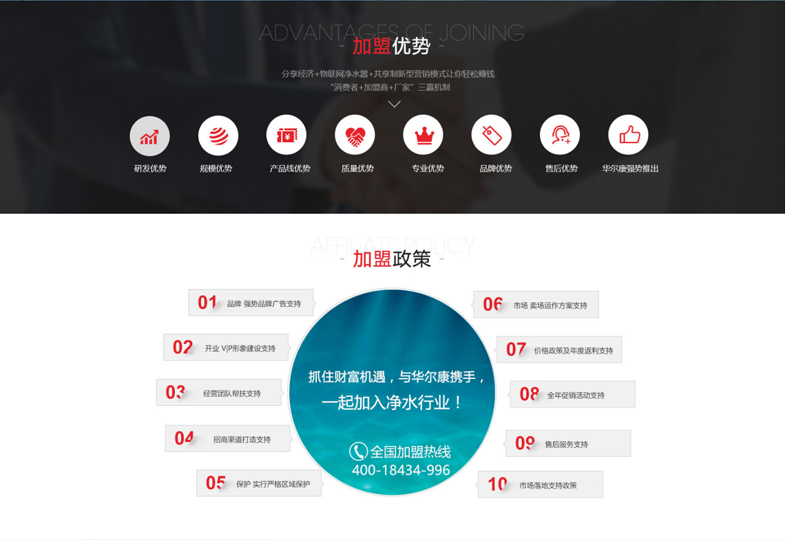 华尔康集团立志将“华尔康净水器” 打造成家喻户晓的品牌。公司积极研发进取,19年专业净水,19年不断创新,华尔康现己成为国内外顾客信赖的品牌。19年来,近百位公司各类技术人员,孜孜以求,是业内能自主开发过滤材料和过滤技术的公司。其科研团队致力于新技术产品的研发并完成多项产品,战略客户涵盖了饮料巨头可口可乐、百事可乐、星巴克、必胜客、肯德基等多家知名品牌。 华尔康净水器不断创新科技,提升用户生活品质。本着“奉献社会、造福人类”的经营宗旨,为加盟商和客户提供细致、多元化、宽层次服务。展望未来,华尔康净水器将继续坚持企业使命和企业精神,誓做国际上知名的净水设备。积极参与水环保事业,与各界人士携手合作,打造一个绿色、环保、健康的清新水世界!