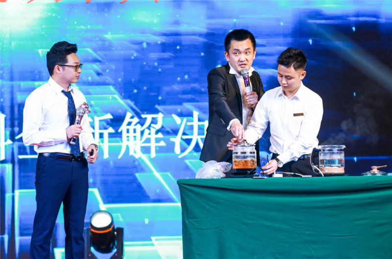 通过现场分别进行铁木真新材料地板与传统木地板煮水实验对比,通过水的颜色变化测试出不同地板的甲醛含量,防水性能,与稳定抗压性、经过几分钟的实验过程,铁木真地板煮出的水清澈明亮,地板测量厚度无变化,传统地板煮出的水变成酱油色,地板厚度出现明显变化,以此得出结论、铁木真地板无甲醛、防水性能、抗变形极佳,总结为铁木真地板解决传统地面装饰材料的所有痛点,是全新的地面装饰解决方案,是真正能代表未来的地板。