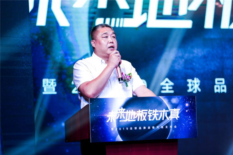 铁木真品牌部总监冷海良代表公司进行了《未来地板铁木真》为主题的演讲,通过剖析传统地面装饰材料的八大痛点,进而引出铁木真地板的优势与卖点。