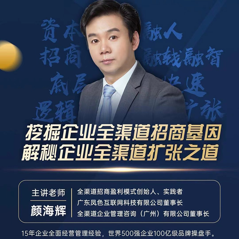 企业要想有好的发展前景,就必须要有顶级优秀的人才,源源不断的资金,优质的渠道代理资源。企业如何解决人才、资金、资源的问题?如何系统地破局?全渠道招商盈利系统创始人颜海辉老师给出的解决方案概括起来就五个字,叫全渠道招商,何为全渠道招商?用一句话来描述,就是把公司的产品+模式+股权三者相结合起来当成企业资本,让它参与流通,然后通过产品招商+模式招商+资本招商三者相结合的手段去整合人、整合钱、整合资源。来实现企业快速做大做强赚钱又值钱的目的。这就是全渠道商学院院长颜海辉老师给出的快速解决疫情过后中小企业培训咨询最直接最有效的应对策略。